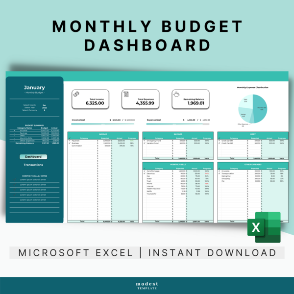 Monthly Budget Dashboard - RosyDew